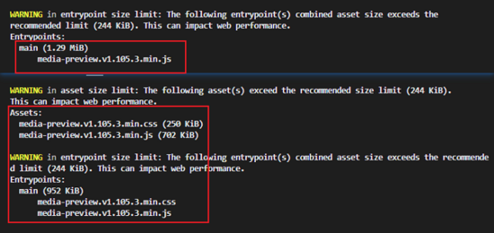 构建生成的产物含有一堆图片和字体文件,并且都重复了双份,其实期望的结果是这些资源都被base64编码在代码中,但没有生效。
