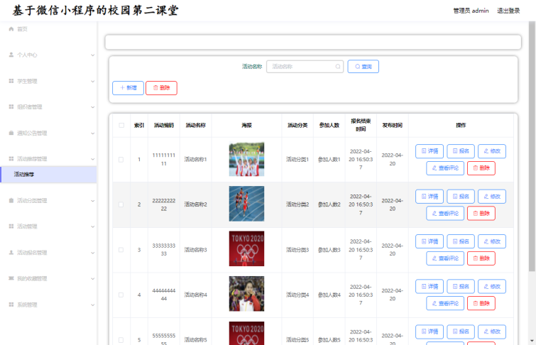 微信小程序校园第二课堂+后台管理系统|前后分离VUE》该项目含有源码、论文等资料、配套开发软件、软件安装教程、项目发布教程等