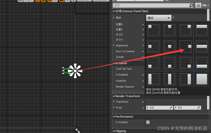 技巧:按住shift+ctrl再点击锚点,就可以同时设置锚点和位置