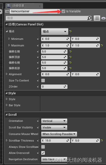 将添加的item控件蓝图作为 itemcontainer的子组件。