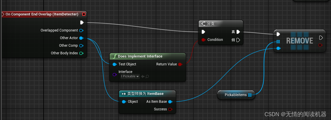 如果检测到了调用pickable接口的item,就将该item向上转型为itembase类,然后存到数组(只存不重复项)。