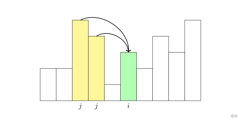 现在考虑以 ii 结尾的单调不升子序列的长度的最大值 \mathit{dp}_idpi。由于我们需要计算所有满足 h(j)>h(i)h(j)>h(i) 的 jj 中,\mathit{dp}_jdpj 的最大值,不妨考虑这个 \mathit{dp}_jdpj 的值是啥。设 \mathit{dp}_j=xdpj=x,那么如果 h(i)> f_xh(i)>fx,由于 f_x\ge h(j)fx≥h(j),就有 h(i)>h(j)h(i)>h(j),矛盾,因此总有 h(i)\le f_xh(i)≤fx。