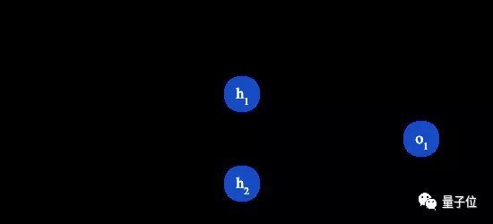 这个网络有2个输入、一个包含2个神经元的隐藏层(h1和h2)、包含1个神经元的输出层o1。