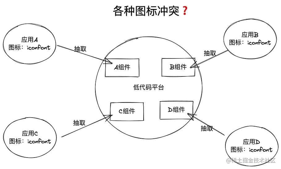 这样做当然没问题,但是到低代码平台那边就会加载 n 个字体文件,并且都是包含整个应用的字体,这就失去了使用 iconfont 的优势。