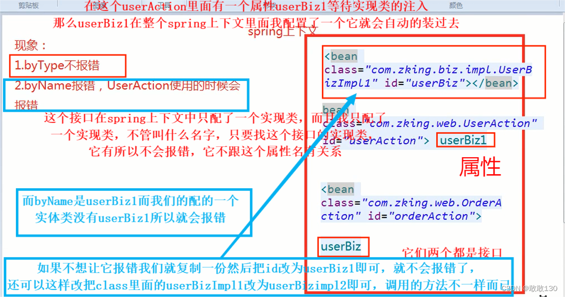 byName:根据bean 的 id在Spring的上下文中进行寻找,匹配上了会自动注入给属性