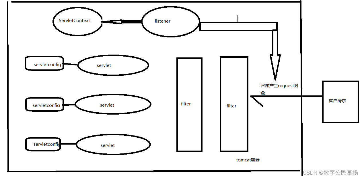 Listener对象,可以实现对ServletContext, HttpRequest, 还有HttpSession三个对象的监听。这三个对象的产生、修改、销毁等变化,都可以根据需要获取有关信息。