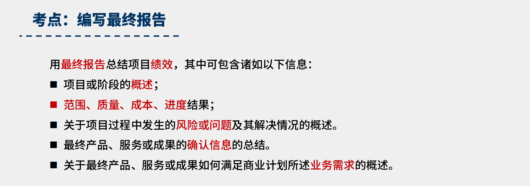 项目整合管理由项目经理负责。虽然其他知识领域可以由相关专家(如成本分析专家、进度规划专家、风险管理专家)管理,但是项目整合管理的责任不能被授权或转移。