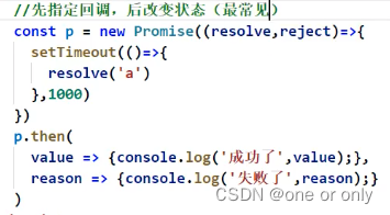 - // 4) 能 promise 指定成功或失败的回调函数来获取成功的 vlaue 或失败的 reason