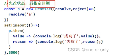 4、通过then方法为Promise的实例指定成功、失败的回调函数,来获取成功的value、失败的reason