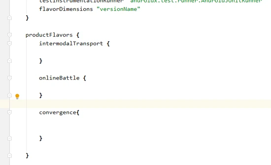 Android studio升级到3.0之后,gradle增加了多维度管理配置,便于同一个项目中创建应用的不同版本,分别管理依赖项并签署配置。创建产品风味与创建构建类型类似:只需将它们添加到productFlavors {}代码块,并配置您想要的设置。产品风味支持与 defaultConfig相同的属性,这是因为defaultConfig实际上属于ProductFlavor类。