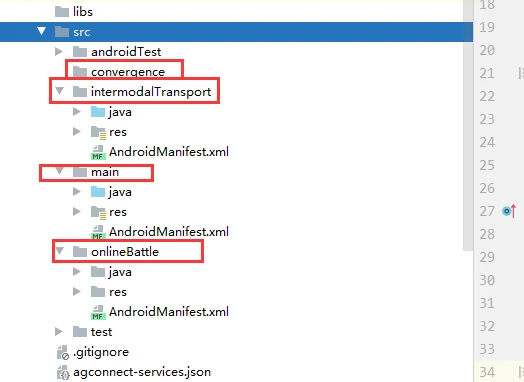 我在build.gradle配置了三个项目,那么相应的需要建立三个资源文件夹,main属于工程主体,如下图所示。