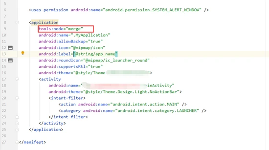 在编译的时候Android studio会把main的清单文件和选中项目的清单文件合并,但是合并就会出现冲突。在这里只介绍两种合并方法:merge和replace