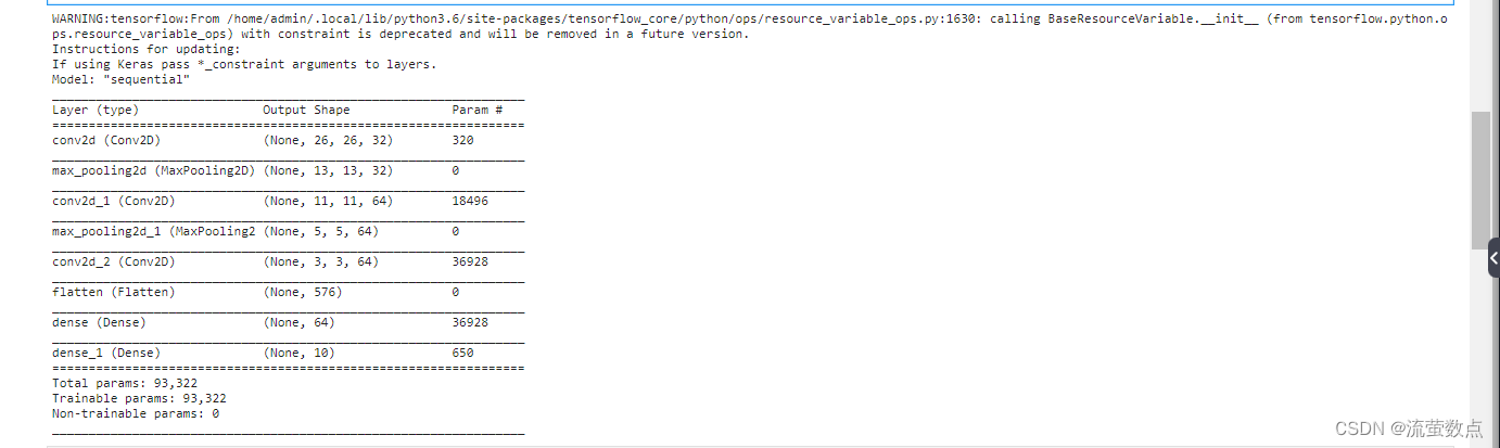 - layers.Conv2D(32, (3, 3), activation='relu', input_shape=(28, 28, 1)), #卷积层1,卷积核3*3