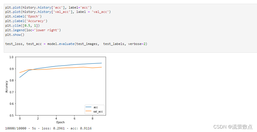 - test_loss, test_acc = model.evaluate(test_images, test_labels, verbose=2)
