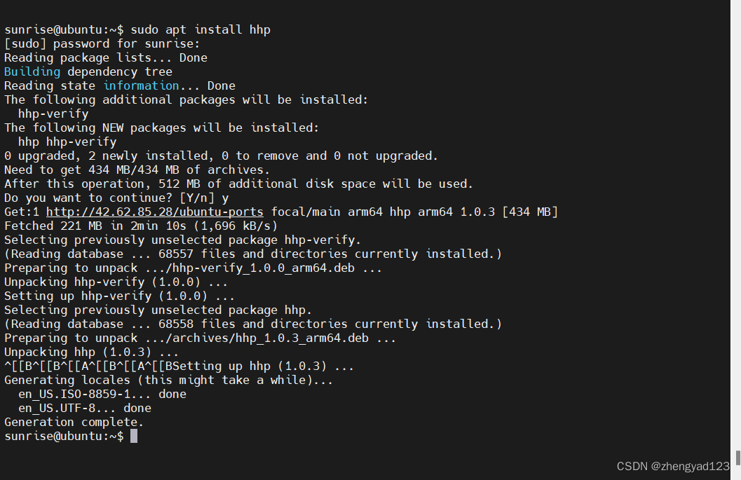 1,安装软件时,执行命令sudo apt install hhp,出现如下错误: