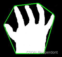 但是,在凹陷个数为0时,既可能表示数值0也可能表示数值1。因此,此时无法通过凹陷区域的个数来识别手势所表示的数字。这种情况下,就需要应用到凸包的概念。