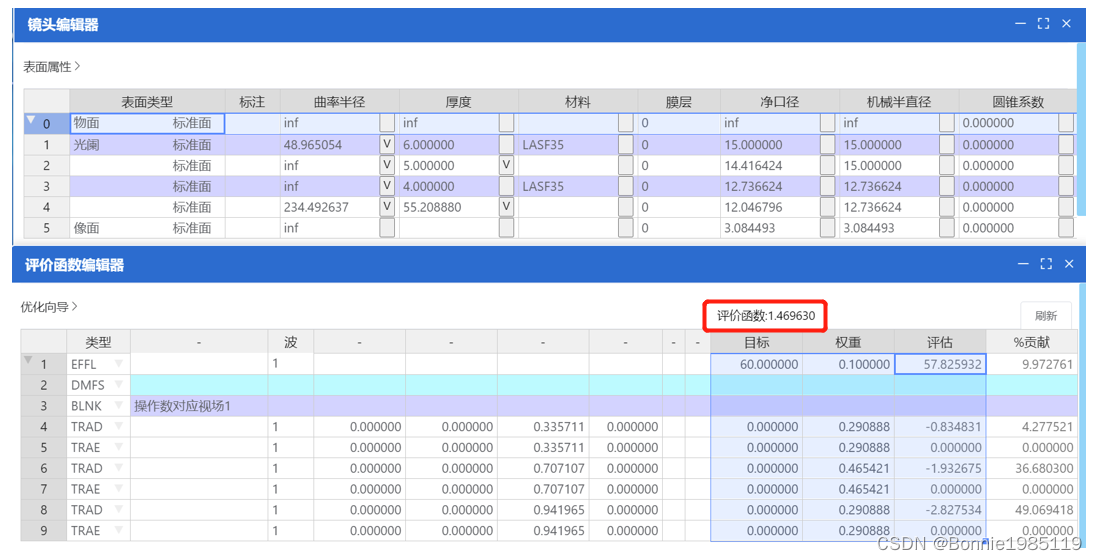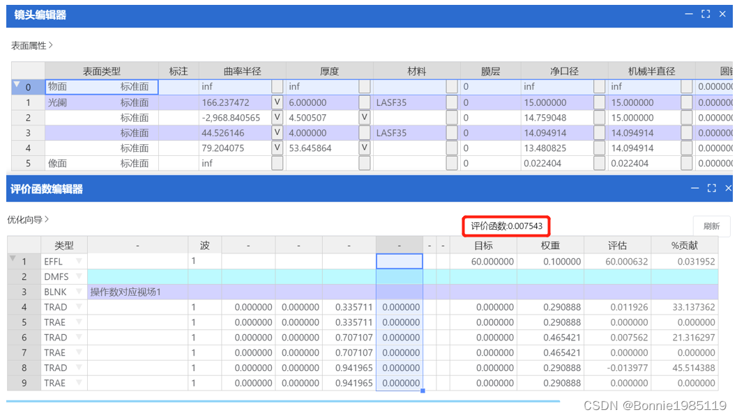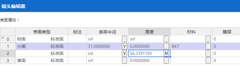 BK7折射率为1.5168,则 优化时把M求解设置为变量  优化前