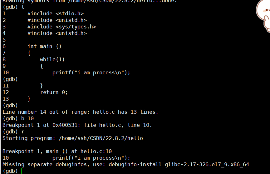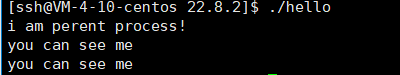这里我们可以看到,其中fork之后的语句被执行了两次,是因为在fork之后,我们的进程就变为两个了,我们在稍微修改下我们的代码,我们创建子进程后,我们直接在进行获取PID和PPID: