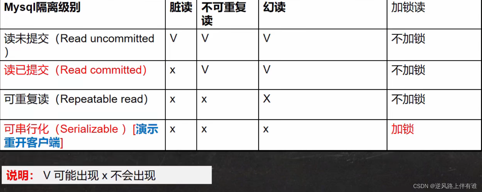 - 查看当前会话隔离级别
