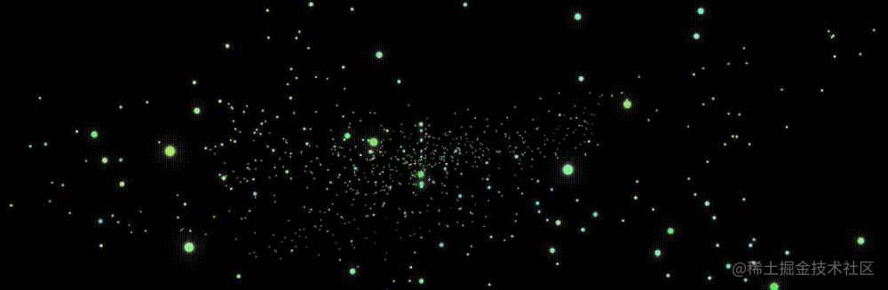 有了 10000 个聚集在一起的粒子,我们给每个粒子添加任意不同的属性,就可以得到各种不同的粒子效果了。