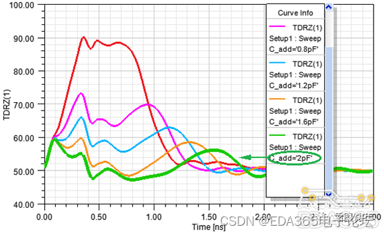 看看上图拓朴结构的TDR瞬时阻抗,与上升沿Tr关系:
