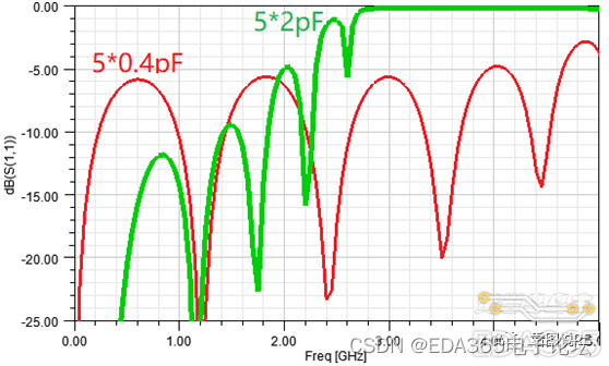 按照前面假设的标准,每隔180mil布局1pF电容,大致能传输2.2Gbps数据信号。