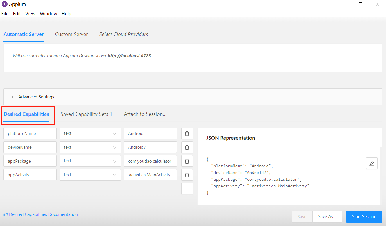 Desired Capabilities是在 JSON 对象中编码的键和值,在请求新的自动化会话时由 Appium 客户端发送到服务器,