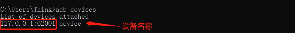(1)deviceName : 设备名称 ,获取方式:通过adb devices获取 127.0.0.1:62001