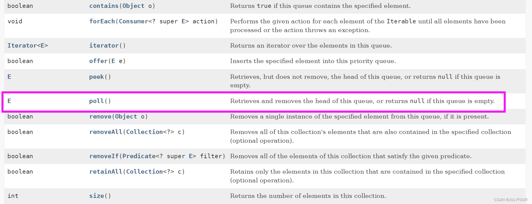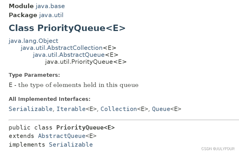 java.util.PriorityQueue继承自java.util.AbstractQueue抽象类,java.util.AbstractQueue实现了java.util.Queue接口:
