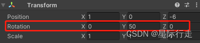 - transform.rotation = Quaternion.Euler(0, 50, 0);