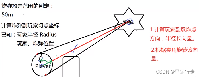 - leftTangetPoint = playerPos + Quaternion.Euler(0, angles, 0) * playerToBombRadius; // 用四元数旋转半径向量