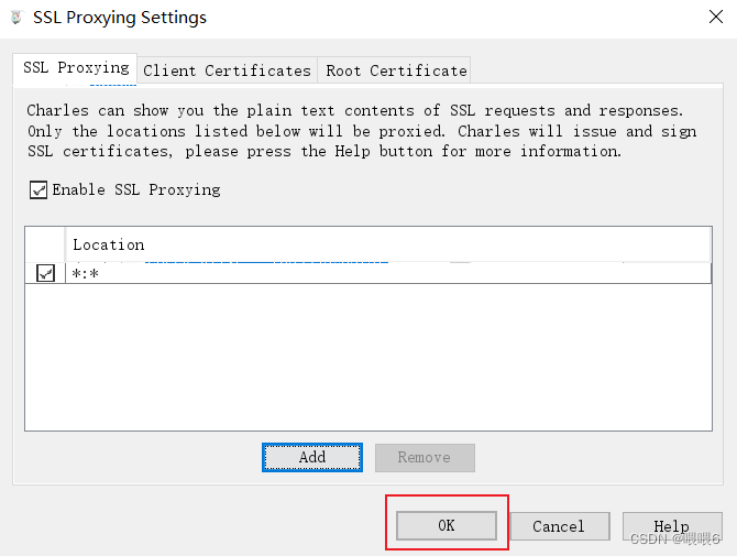 1.点击help,选中ssl Proxying ,点击Install Charles Root Certificate