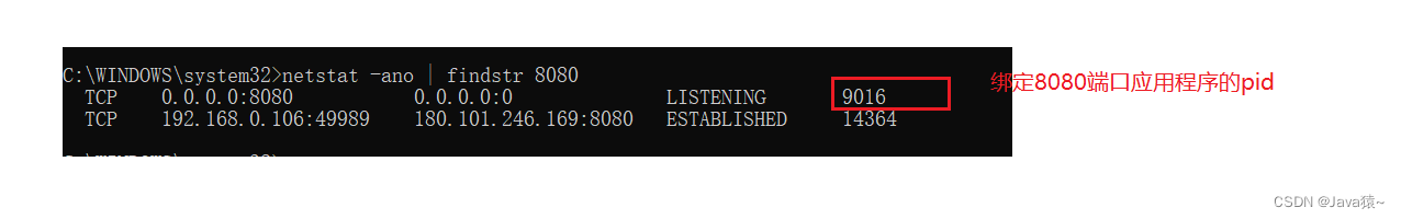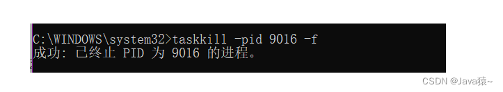 如果端口号被其他应用程序占用,使用taskkill -pid pid号 -f来处理掉程序