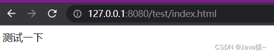 示例:在webapps目录下,创建一个test文件夹,在test文件夹中创建一个index.html,使用浏览器访问
