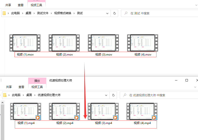 第五步,通过查看最后转换好的文件夹,会发现优速视频处理大师已将将所有mov视频全部转成了mp4格式。