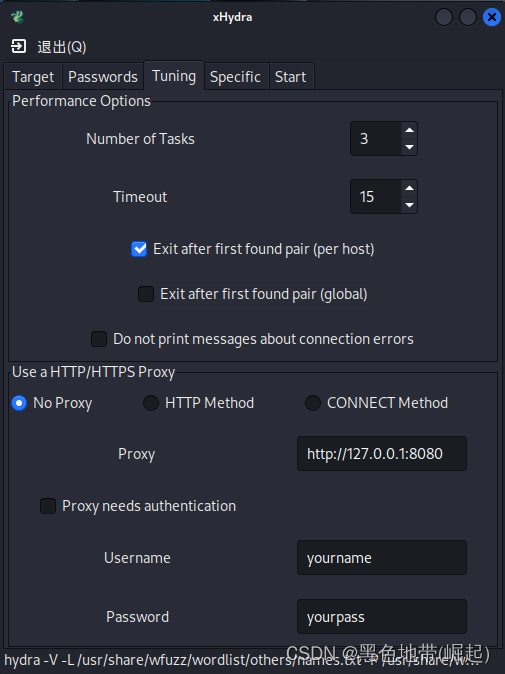 Hydra是一个相当强大的暴力密码破解工具。该工具支持儿乎所有协议的在线密码破解, 如FTP、HTTP 、HTTPS、MySQL 、MS SQL、Oracle、Cisco、IMAP和VNC等。其密码能否被破解, 关键在于字典是否足够强大。很多用户可能对Hydra比较熟悉, 因为该工具有图形界面, 且操作十分简单, 基本上可以“ 傻瓜” 操作