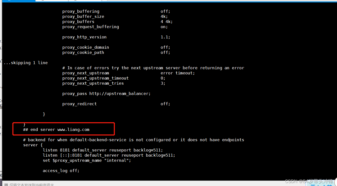 - 可以看到从 start server www.liang.com 到 end server www.liang.com 之间包含了此域名用于反向代理的配置
