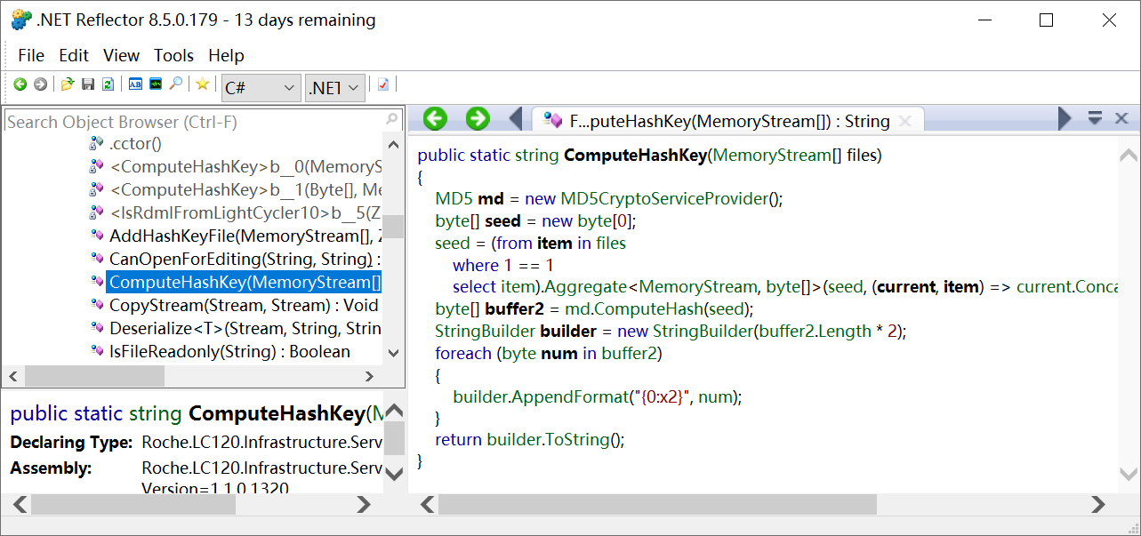 刚刚分析Roche.LC120.Infrastructure.Services.il的时候有看到命名为ComputeHashKey的方法,现在去浅浅分析一下~