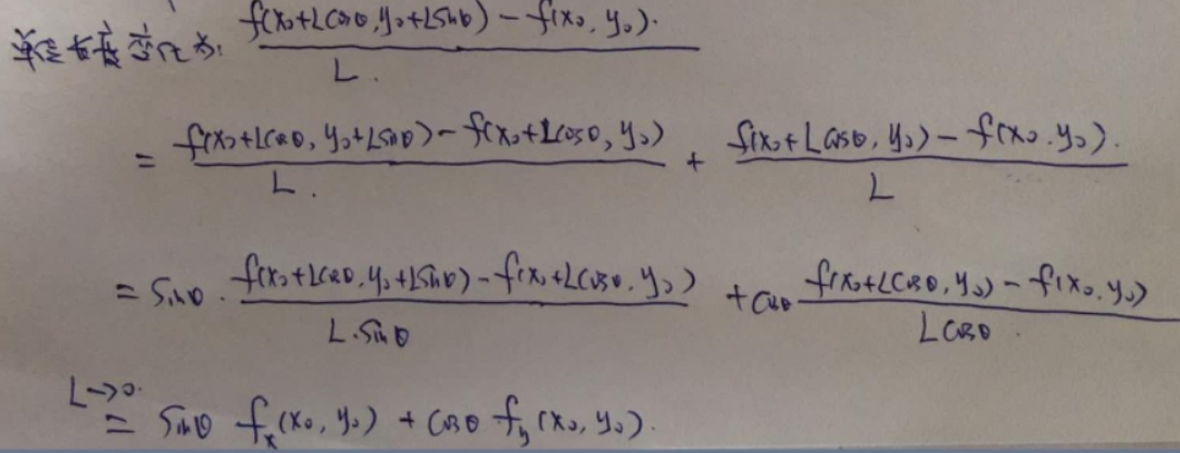 我们想要计算最大梯度,也就是计算单位长度变化大的方向,即求得一个θ,使单位长度变化最大。