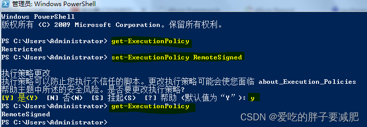 get-ExecutionPolicy Restricted set-ExecutionPolicy RemoteSigned Y get-ExecutionPolicy执行完成之后,get-ExecutionPolicy的值变为RemoteSigned,再次打开pycharm的Terminal就不报错了。
