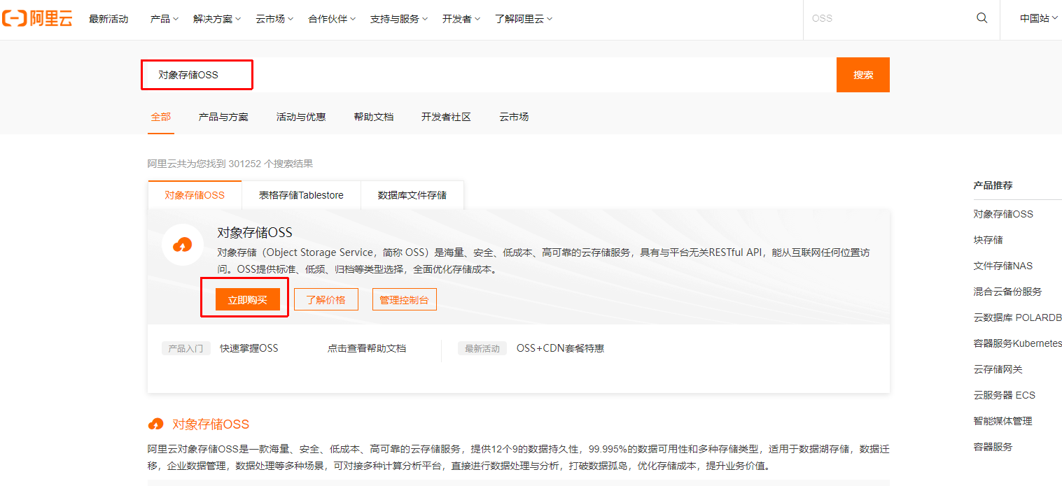 找到对象存储OSS,点击立即购买