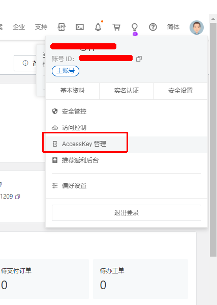 点击AccessKey管理