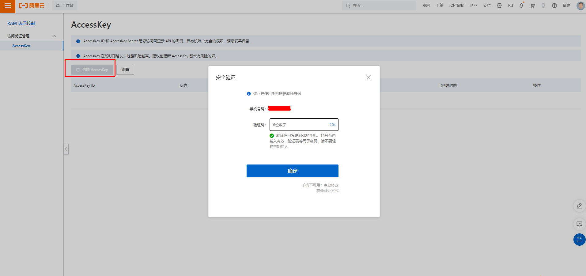 点击创建AccessKey