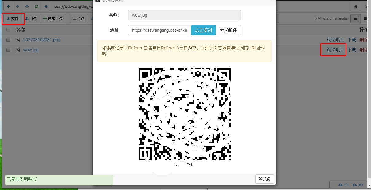 使用工具上传文件,然后点击获取地址,可以看到文件的相关信息,和页面上雷同
