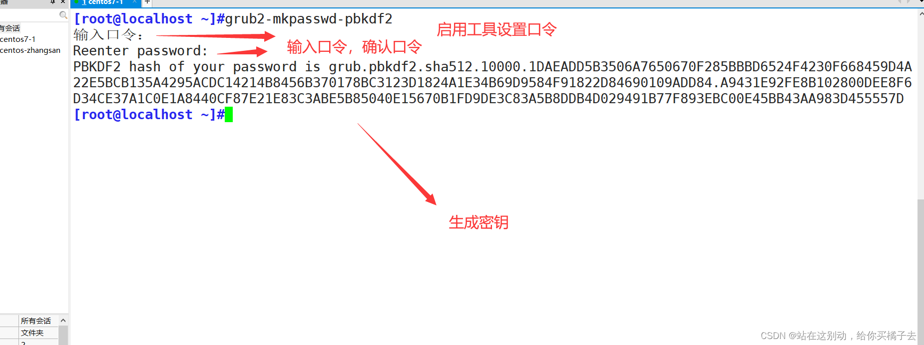 本实验:利用grub2-mkpasswd-pbkdf2生成密钥,对grub相关的重要文件备份,再进入到grub的开机配置,进行修改,添加密钥信息。最后通过grub2-mkconfig -o /boot/grub2/grub.cfg 生成新的grub-cfg文件