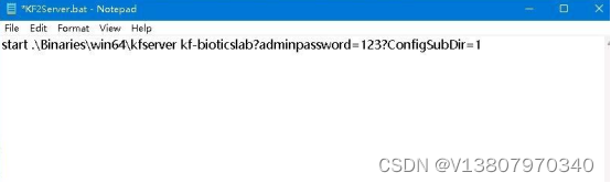 回到上面讲的端口问题,复制粘贴KF2server启动文件并重命名(支持中文)然后编辑KF2server服务器启动文件,将以下这段话粘贴到密码后面