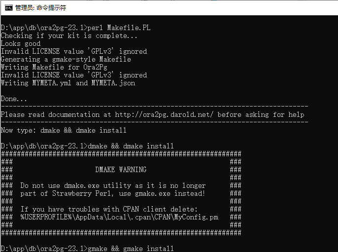 6、执行导出语句: ora2pg -c c:\ora2pg\ora2pg_conf.dist