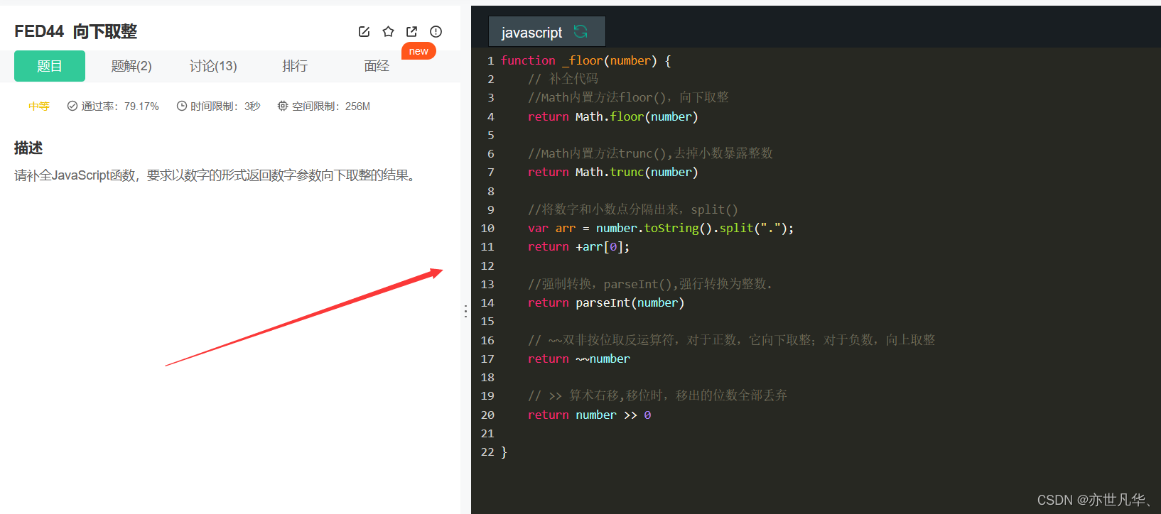 向下取整可以使用Math的内置方法,或者使用其它的小技巧。