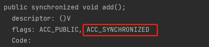 如上图,我们可以看到同步方法在反汇编后,不再是通过插入monitorentry和monitorexit指令实现,而是会增加 ACC_SYNCHRONIZED 标识隐式实现的,如果方法表结构(method_info Structure)中的ACC_SYNCHRONIZED标志被设置,那么线程在执行方法前会先去获取对象的monitor对象,如果获取成功则执行方法代码,执行完毕后释放monitor对象,如果monitor对象已经被其它线程获取,那么当前线程被阻塞。