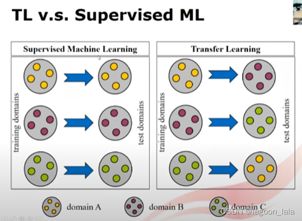 迁移学习在一个域上有足够数据, 在另一个域可以利用之前域学到的知识. 而不是从头收集数据.